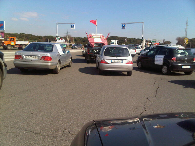 Alla consistente carovana composta da pullman, auto e camion con bandiere, striscioni, ma anche pattini, ombrelloni e sedie a sdraio, proveniente da tutto il litorale laziale, si sono aggiunte delegazioni dall’Abruzzo, dalla Toscana e dalla Campania.